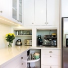 حدد العناصر الهيكلية حسب الغرض من خزانة معينة. في أحدها ، يمكنك تخزين الأجهزة المنزلية (طباخ متعدد ، مطحنة قهوة ، عصارة) ، في الآخر – مواد نسيج (مناشف ، حاملات ، مناديل). تستخدم بعض ربات البيوت خزانة قاعدة كخزانة لتخزين الحبوب والأطعمة المعلبة واللف.