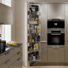 ميزة وحدة الزاوية هي صغر حجمها مقارنة بالركائز الكلاسيكية. لزيادة الأمان في المنزل ، يوصى بتدوير الزوايا الحادة وتثبيت باب نصف قطره. كإكسسوارات إضافية لهيكل الزاوية ، يمكنك استخدام زاوية أو رف يسحب للخارج أو سلة. الحل المألوف هو خزانة ذات عمود زاوية طويل مع “دائري” مع وصول سريع إلى أدوات المطبخ.