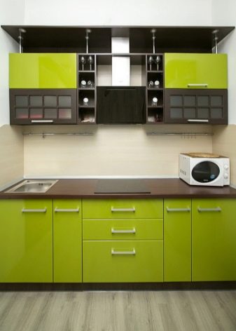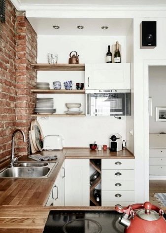 غالبًا ما يقدم المصممون حلولًا غير قياسية في الداخل ، مما يسمح لك بتعليق الأقسام أعلاه ، أو العكس ، أدناه. لهذا السبب ، ستكون المسافة بين سطح العمل ووحدات الحائط مختلفة. بالنسبة لمطبخك ، قد يكون الخيار الذي تحتاج فيه الأقسام العلوية للتعليق على مستوى السقف مناسبًا تمامًا ، اعتمادًا على خصائص الغرفة..