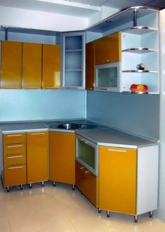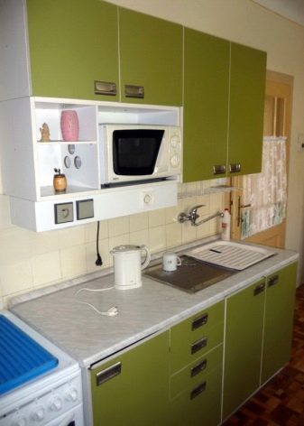 تتكون مجموعة المطبخ من عدة عناصر ، بما في ذلك خزانة وخزانة حائط. بالنسبة لطاولات السرير الموضوعة في المستوى السفلي ، لا يلزم وجود أدوات تثبيت إضافية ، وبالنسبة للأقسام المفصلية ، يلزم تثبيت خاص. يجب عليك أيضًا التأكد من تثبيتها على الحائط ، مباشرة فوق العناصر السفلية..