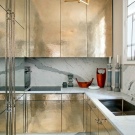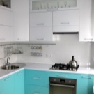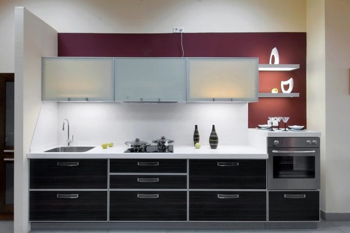 في البداية ، من الضروري تنفيذ تصميم خزانة الحائط. معيار اختيار الارتفاع هو ارتفاع صاحب المطبخ. إذا كنت طويل القامة ، علق الخزانات العلوية أعلى. بالنسبة للأشخاص الصغار ، يجب تقليل المسافة بين سطح العمل والحواف السفلية لوحدة المطبخ..