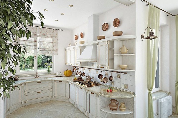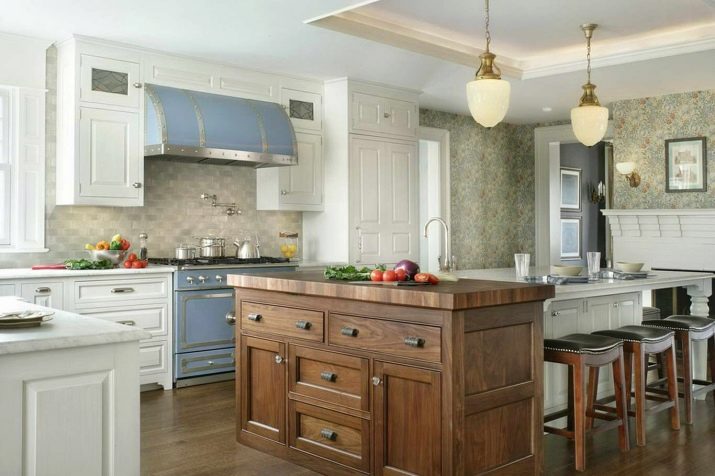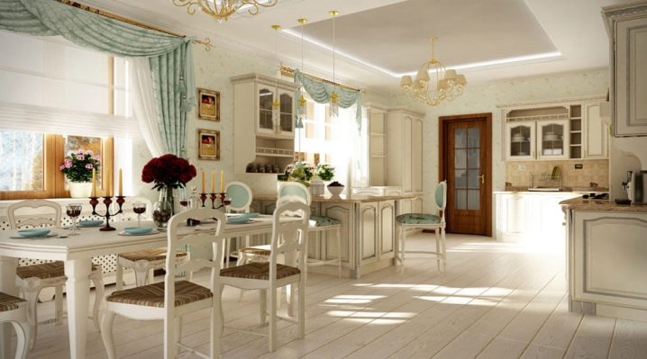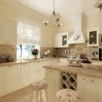 كقاعدة عامة ، نقضي الكثير من وقت الفراغ في المطبخ. لذلك ، يجب أن يكون الجو هناك مريحًا وهادئًا ، ويؤدي إلى قضاء وقت ممتع مع الأصدقاء والعائلة. يمكنك إنشاء جو مماثل باستخدام أسلوب بروفانس أو الطراز القديم في الداخل..