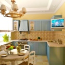 بالمناسبة ، يمكن تصميم بلاط السيراميك ليس فقط للبناء ، ولكن أيضًا لجدار من الطوب. هذا صحيح أيضًا في التصميمات الداخلية على طراز بروفانس. المئزر المصنوع من بلاط السيراميك جيد أيضًا لأنه مقاوم للأوساخ. لن تظهر أي نقاط على خلفيتها..