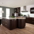 - السمات التشغيلية لإنتاج المواد الخام. أثاث المطبخ يعاني في الغالب من تأثير البيئة الخارجية (هناك تقلبات في درجات الحرارة ، ورطوبة عالية ، وتناثر متكرر للزيت المغلي ، وسوائل مختلفة). لذلك يجب أن تكون الواجهات قوية ومقاومة لأي تأثيرات بيئية (حرارية ، ميكانيكية ، كيميائية) ، متينة.
