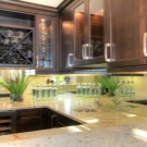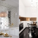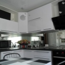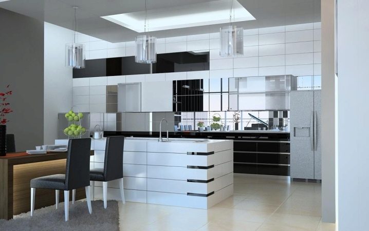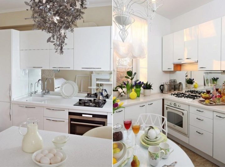 المصممون على دراية بقدرة المرايا على عكس الضوء. هذا يسمح لك بتوزيع الإضاءة بشكل عقلاني في مساحة المطبخ. في بعض الأحيان ، بدلاً من المصابيح ، يعتبر استخدام الإضاءة في منطقة ساحة المرآة كافياً..