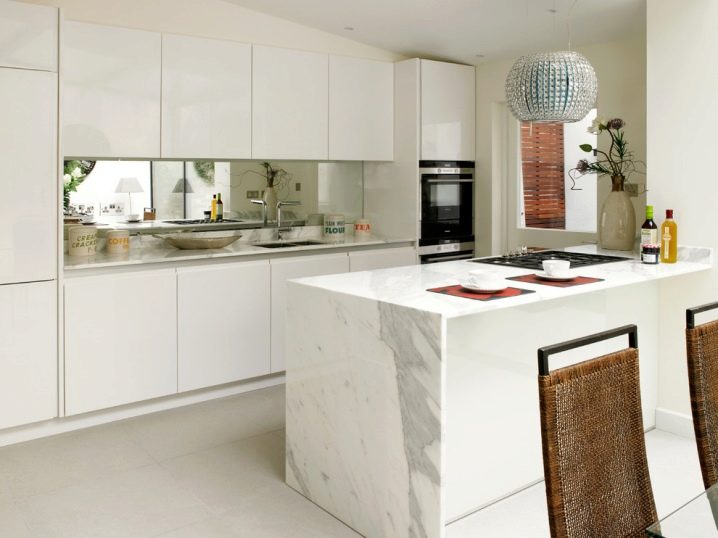 يعد استخدام باكسبلاش عاكسة ، بالإضافة إلى اللون الأبيض ، من أشهر خدع التصميم لتوسيع المساحة في المطبخ. ومع ذلك ، حتى في هذه الحالة ، قد تنشأ ظروف معينة ، والتي يجب أن تؤخذ في الاعتبار أيضًا لتجنب التأثير المعاكس..