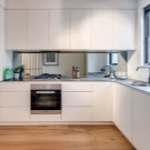 إنها مصنوعة من الزجاج المقسّى وهي شديدة المقاومة للتأثيرات. يمكن أن يصل طول لوحة المرآة هذه إلى ثلاثة أمتار ، لذلك يمكن استخدامها لإنشاء هيكل مرآة واحد مع وصلة زاوية واحدة. يوسع هذا الخيار مساحة المطبخ بشكل كبير ، ويخلق شعورًا بمساحة أكبر..