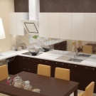 مثال آخر ، إذا كانت الخزانات على مسافة كبيرة جدًا من بعضها البعض والمرآة تؤدي فقط إلى تفاقم الموقف ، وتحريكها بعيدًا. في هذه الحالة ، يوصي المصممون بدمج سطح المرآة مع المواد المستخدمة لتزيين جدران المطبخ الأخرى..