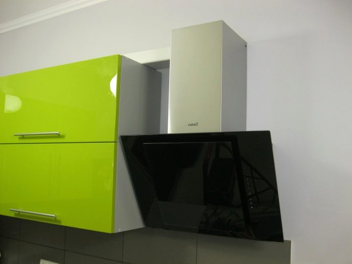 غطاء مائل. الجهاز الأكثر ابتكارًا. معلقة على الحائط. مظهر عصري ورائع للغاية. لا يأخذ الهواء من خلال الشبكة ، ولكن من خلال الثقوب الصغيرة ، ونتيجة لذلك ليس من الضروري غسل الخلايا الشبكية ، وهو أمر يصعب القيام به. بالإضافة إلى ذلك ، غالبًا ما تكون القلنسوات مزودة بأجهزة تحييد. هم من ثلاثة أنواع.