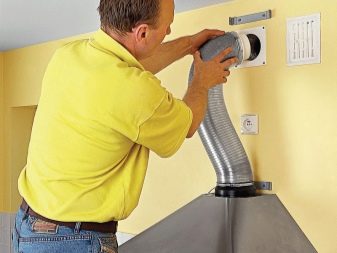لكن الخزانة فوق الموقد ليست مثبتة دائمًا. قد يكون السبب في ذلك هو السلامة من الحرائق ، إذا كان الموقد يعمل بالغاز ، أو ببساطة تصميم غطاء المحرك غير مناسب للتركيب في الخزانة. للقيام بذلك ، يتم وضع أنبوب مموج ببساطة فوق الغطاء ويتم تركيب وحدة تكسير أمام مدخل التهوية ، والتي يتم توصيل جسمها بالجدار. يتم إغلاق الهيكل الكامل للتمويج وصمام الفحص بصندوق بلاستيكي جاهز أو مصنوع من لوح دريوال.