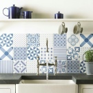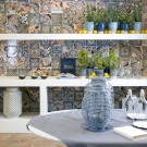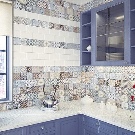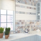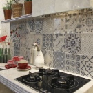 سوف تبدو “المرقعة” بشكل رائع في غرفة المعيشة في المطبخ. قم بإنشاء مساحة متناغمة هنا بمزيج من ظلال الذهب والفضة والرمل. تبدو بلاط الأرضيات بقياس 45 × 45 سم وبلاط الجدران بقياس 25 × 50 سم مثيرة للاهتمام في المطبخ.سيقلد البلاط المذهل الرقع المخيطة بطباعة هندسية غريبة. لن تخطئ إذا اخترت لوحة Gzhel ، والتي تعطي تأثيرًا ممتازًا للداخل على الطراز الشعبي البروفنسالي الروسي..