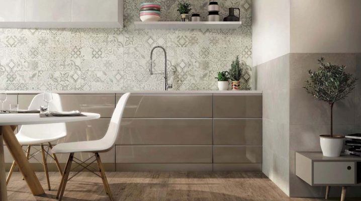 يجب اختيار النمط والتصميم والسطوع للبلاط نفسه ، مع مراعاة بقية عناصر الديكور (طاولة طعام ، سطح عمل ، خزائن معلقة ، واجهات ، أرضيات ، منسوجات). أثبتت منتجات البلاط والسيراميك نفسها بشكل جيد. هذه مواد صلبة متينة للغاية ومقاومة للتأثيرات الخارجية ، على سبيل المثال ، انخفاض درجات الحرارة والبخار والرطوبة.