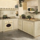 أيضًا ، غالبًا ما يتم اختيار بلاط السيراميك كأرضيات في المطبخ. في هذه الحالة ، يتم إيلاء المزيد من الاهتمام للخصائص التقنية: مقاومة التآكل والقوة. الخيار الأفضل هو البلاط ذو السطح غير اللامع. يجب أن يكون اللون داكنًا أو متنوعًا بشكل مثالي. هذا سوف يخفي كل أنواع التلوث..
