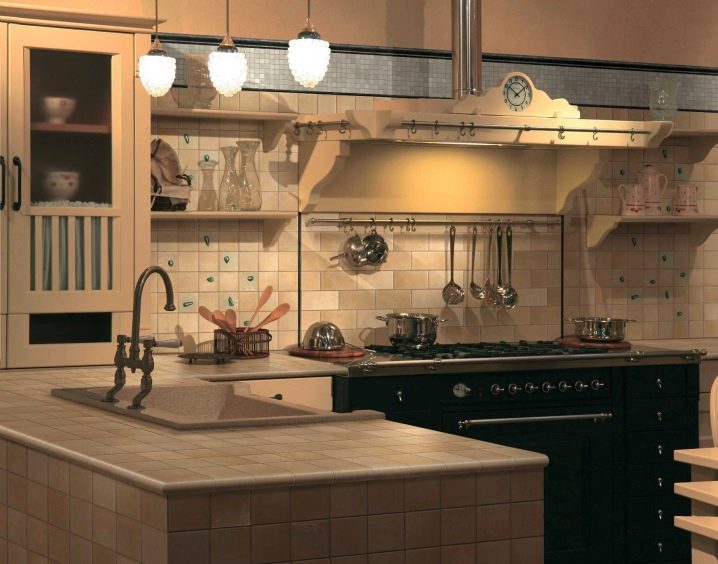 لا ينبغي اختيار بلاط المريلة بشكل صحيح فحسب ، بل يجب أيضًا وضعه بشكل صحيح. الحقيقة هي أن مفاصل البلاط تتسخ بسهولة شديدة. لذلك ، من الضروري اختيار البلاط الكبير ووضعه بإحكام واستكماله بالجص. أيضًا ، لا تحتاج إلى اختيار البلاط المزين بجميع أنواع الأنماط – فهي ، مثل طبقات البلاط الداخلية ، سوف تسد الدهون وجميع أنواع الأوساخ في المطبخ..