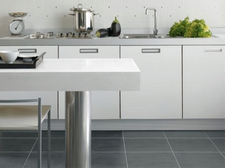 بالمناسبة ، من المستحسن وضعه على أرضية وجدران مسطحة تمامًا. الحقيقة هي أنه عندما تكون هناك فجوات بين الصفائح الفردية ، يمكن أن تنكسر عندما تسقط عليها أشياء ثقيلة. هذا يزيد من تكلفة تجديد المطبخ..