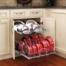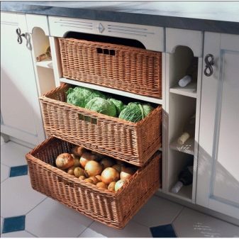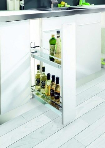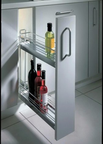 يمكن أن تحتوي خزانة المطبخ القائمة على الأرض على أبواب أو خزانات. تعتبر الخزائن المدمجة رائعة بالنسبة للأواني الفخارية. خيار مثير للاهتمام لخزانة القاعدة هو مقلمة. سيجمع عمود معين من الأرفف بين المساحة السفلية والعلوية. يمكنك وضع الكثير من الأشياء هناك وهذا الاستخدام للمساحة منطقي تمامًا..