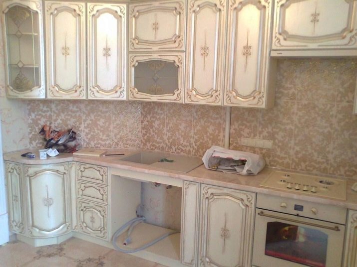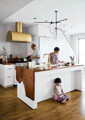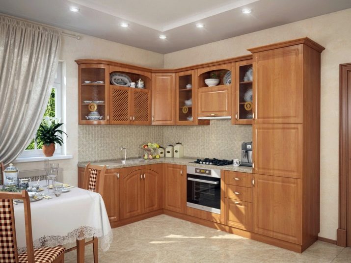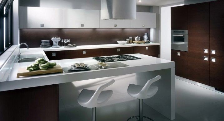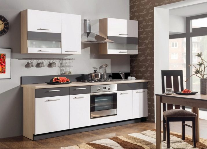 يمكن شراء الخزانات بشكل منفصل ، لكن الشراء المعياري يكون أكثر ملاءمة. في الحالة الثانية ، هناك بعض الاختلافات في كونترتوب. يمكن أن تقع جميعها على نفس المستوى أو أن يكون لها تصميم متعدد المستويات. يتيح ذلك وضع الموقد على ارتفاع آمن وحوض الغسيل منخفض. هذا مناسب بشكل خاص للعائلات التي لديها أطفال ، يمكنك التفكير في سلامة موقع مختلف سماعات الرأس والمعدات.
