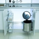 يمكن أن تؤدي خزانة الحوض دورًا وظيفيًا جيدًا فقط مع التصميم الصحيح. خزانات الملابس القابلة للسحب ليست الخيار الأفضل. استخدم خزانة بأبواب. إذا كنت لا تزال ترغب في تقسيم المساحة أسفل الحوض ، فقم بتثبيت الأرفف الداخلية.
