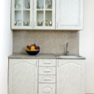 الخزانات مصنوعة من الألواح الخشبية والكتل الخشبية. توجد هياكل ذات واجهات من الألومنيوم أو الصلب. يمكن تركيب هذه الخزانة تحت المغسلة. أسطح العمل مصنوعة أيضًا من الألواح الخشبية والحجرية والخشبية. يمكن استخدام أنواع مختلفة من الزجاج والخشب والمعادن والبلاستيك والسيراميك للزينة. غالبًا ما يستخدم الزجاج في الخزانات ذات الأبواب..
