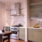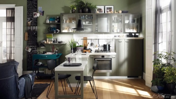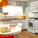 المطبخ الصغير يجعل من الصعب التفكير في التصميم. قم بتركيب طاولة على عجلات أو طاولة قابلة للطي لتوفير المساحة. يمكنك الجمع بين الطاولة وخزائن الملابس ، لذلك ، قم بتثبيت خزانة مزدوجة. ستصبح الخزائن ذات الزجاج المصنفر تفاصيل مثيرة للاهتمام لداخلك. إذا كانت التفاصيل الهشة لا تروق لك ، فيمكنك إضافة لهجات من خلال طلاء الأدراج بألوان مختلفة..