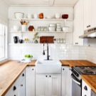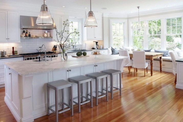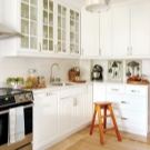 الأثاث الأبيض في المطبخ يبدو جميلًا وجديدًا. لتسهيل تنظيف هذه الأسطح ، استخدم أغشية الأثاث. وبالتالي ، لا يمكنك حماية الأسطح فحسب ، بل يمكنك أيضًا طلاءها. هناك أفلام بتقليد مواد باهظة الثمن. بعض نصائح التصميم الأخرى:
