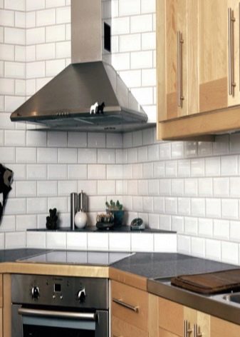 لذلك فإن المطبخ الأبيض مع ساحة من الطوب قد يسعد العين بجمالها الأبيض الثلجي ، علاوة على ذلك ، على خلفية بيضاء ، لن يكون التلوث على شكل غبار وأوساخ وبقع دهنية وبقع من المسح الرطب مرئيًا بشكل واضح. على بلاط مظلم. ميزة أخرى لبلاط الخنازير الأبيض هي أنه سيضيف جماليات وأناقة إلى مظهر المطبخ. إذا تم صنع البلاط الأبيض في ساحة المطبخ الصغير ، فستبدو مساحته بصريًا أكبر مما هي عليه في الواقع..