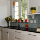 البلاط "خنزير" على باكسبلاش المطبخ عبارة عن بلاط سيراميك على شكل قرميد مسطح مغطى بالزجاج. غالبًا ما يكون للبلاط حواف مشطوفة على طول المحيط بالكامل ، مما يجعل البلاط يبدو أكثر نسيجًا وأكثر كثافة. ولكن هناك أيضًا “خنزير” في السوق بدون شطب أو بشطب صغير.