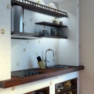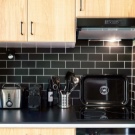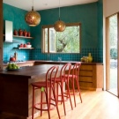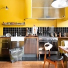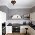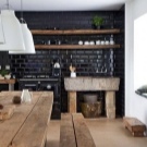 المطبخ المصمم على شكل “خنزير” أسود يبدو حديثًا للغاية ، خاصة إذا كان أثاث المطبخ يتناقض معه. يتماشى البلاط الأخضر جيدًا مع الطراز الريفي ، ويمكن القول أن الظلال الزرقاء تبدو مشرقة وتجذب كل الانتباه. لكن معظم ربات البيوت يفضلن مآزر حمراء أنيقة ومبهجة..