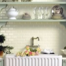 إذا بدأ التجديد في المطبخ ، فغالبًا ما يصبح البلاط هو مادة التشطيب لمئزر المطبخ. وهذا أمر مفهوم ، لأنه متين ، ولديه حد أدنى من المسامية ومقاوم للتأثيرات الخارجية السلبية. بالإضافة إلى ذلك ، فإن مواد التشطيب هذه معروضة للبيع بتشكيلة ضخمة ، بحيث يمكنك اختيار بلاط لكل ذوق. تحظى بشعبية خاصة في عصرنا وقد حصلت على ساحة مطبخ مصنوعة من البلاط “خنزير” ، وشكلها يشبه الطوب المزخرف.