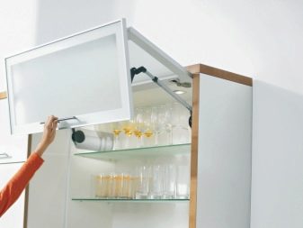 يفضل تعليق الأبواب الزجاجية على خزانة الصف العلوي. يتطلب الزجاج ، باعتباره مادة أكثر هشاشة ، مقاربة خاصة لتركيب المفصلات. يحتوي الجهاز على قائمة معينة من العناصر المطلوبة:
