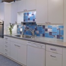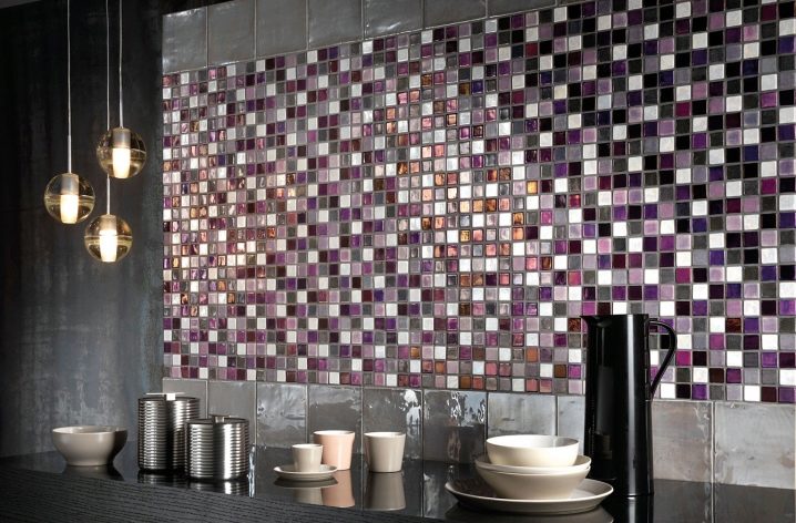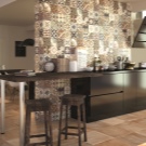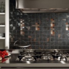 فسيفساء. يستخدم هذا النوع من البلاط حصريًا للأسطح الرأسية. تبدو الفسيفساء رائعة للغاية على سطح العمل أو ساحة المطبخ. بالإضافة إلى الفسيفساء الخزفية ، يوجد أيضًا بلاط زجاجي وفسيفساء من الحجر الطبيعي..