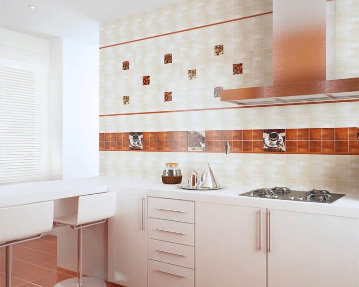 إذا كنت ستجمع بلاطات من عدة ألوان ، فلا ينبغي أن يكون هناك الكثير منها. الكمية المثلى هي لونان أو ثلاثة ألوان. في الوقت نفسه ، من المهم أن يكون لكل منها صدى مع بعض العناصر الموجودة في المطبخ: الستائر ، وورق الحائط ، والأثاث ، وما إلى ذلك..