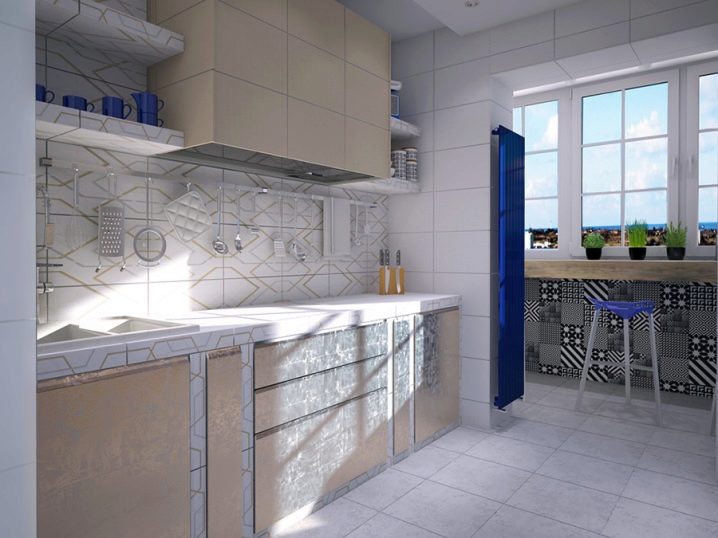 - من الأفضل اختيار الأسطح اللامعة. يضيفون حجمًا إلى الغرفة من خلال عكس الضوء. البلاط سهل التنظيف.