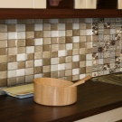 الفسيفساء هو خيار عصري آخر لبلاط المطبخ باكسبلاش. في الأساس ، إنه بلاط زجاجي أو سيراميك. نظرًا لصغر حجمها ، يمكن وضع أنماط وزخارف مختلفة منه. مطلوب محترف متمرس لتصميم ساحة عالية الجودة. هذه المواد أغلى من الخيارات الأكبر. إذا كانت المضيفة تخاف من التورط ، فإن مثل هذا البلاط سيشكل حافة ممتازة للمئزر.