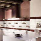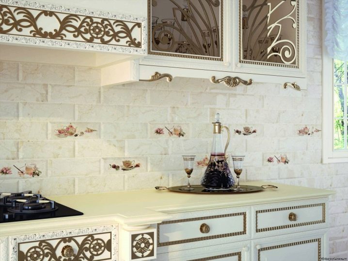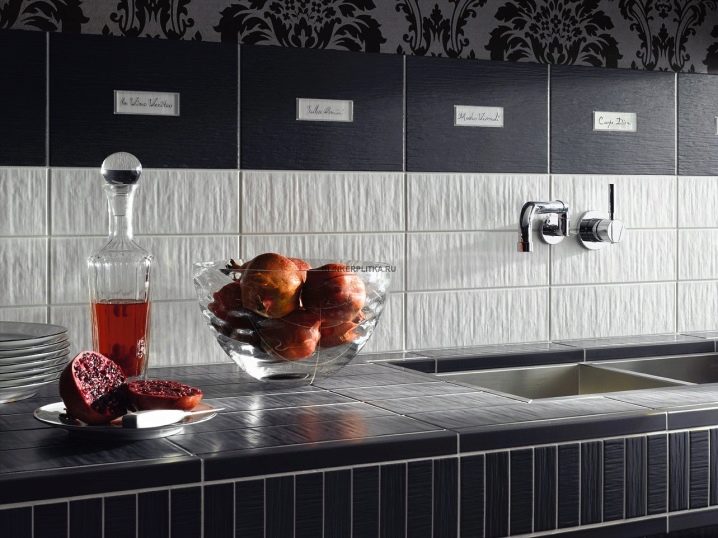 نموذج البلاط الحديث له اسم مثير للاهتمام “الخنازير”. ميزة البلاط هي انتفاخه الطفيف. يمكن استخدامه كطوب منفصلة ، أو يمكن وضعه في عدة قطع على لوحة كبيرة. التأثير الذي تم إنشاؤه بواسطة هذا البلاط أصلي للغاية. قد يكون محبوبًا من قبل عاشق كلاسيكي. ولكن بسبب الملمس غير العادي ، سيبدو أصليًا وأنيقًا في أي مكان داخلي. وفقًا للخبراء ، فإن هذا النوع من البلاط هو الأنسب لمطبخ متوسط الحجم. البلاط المنقوش مناسب أيضًا للمطبخ المدمج.