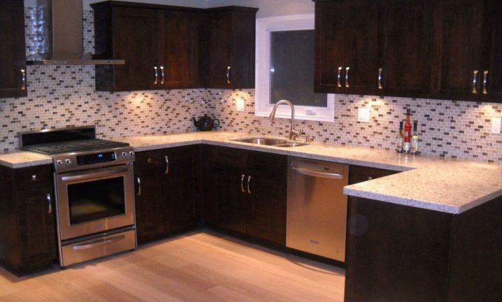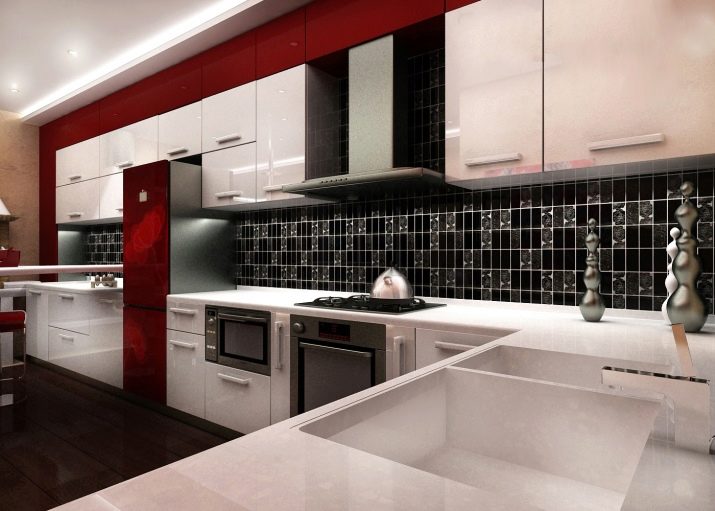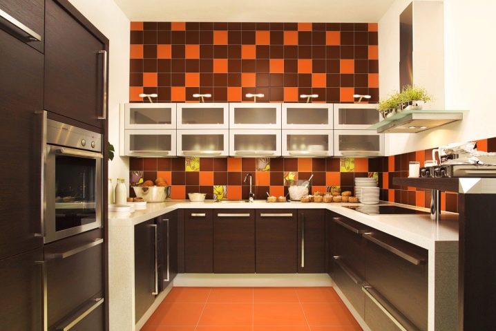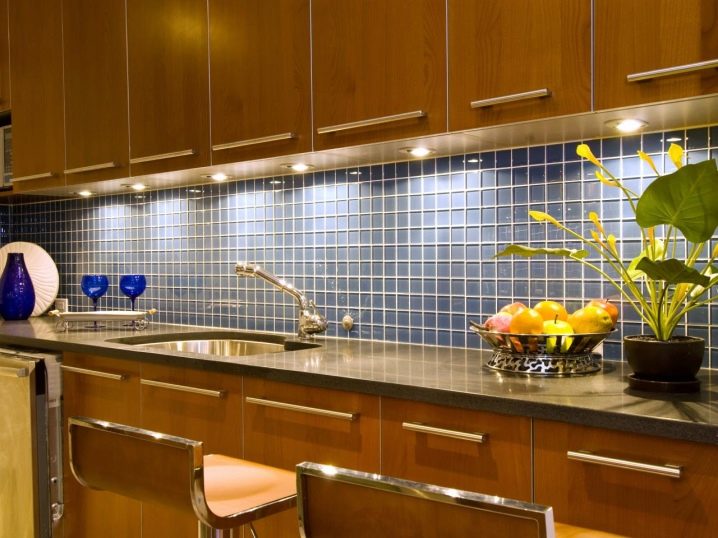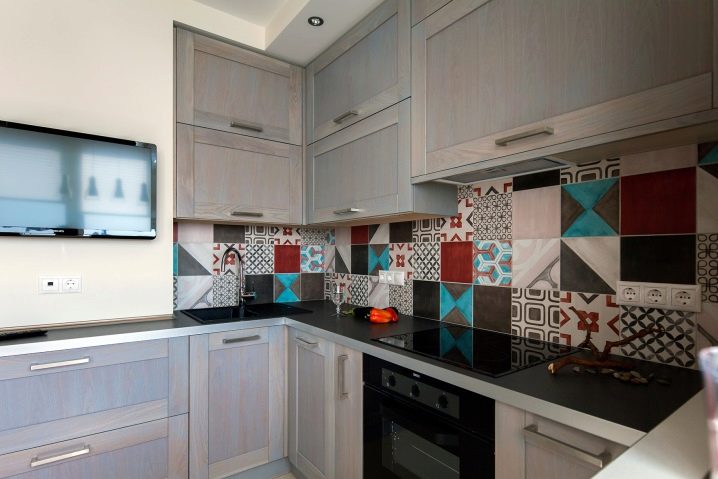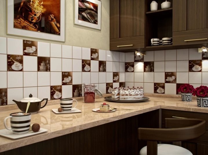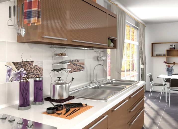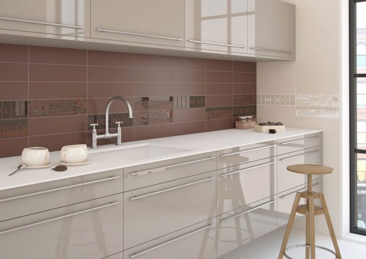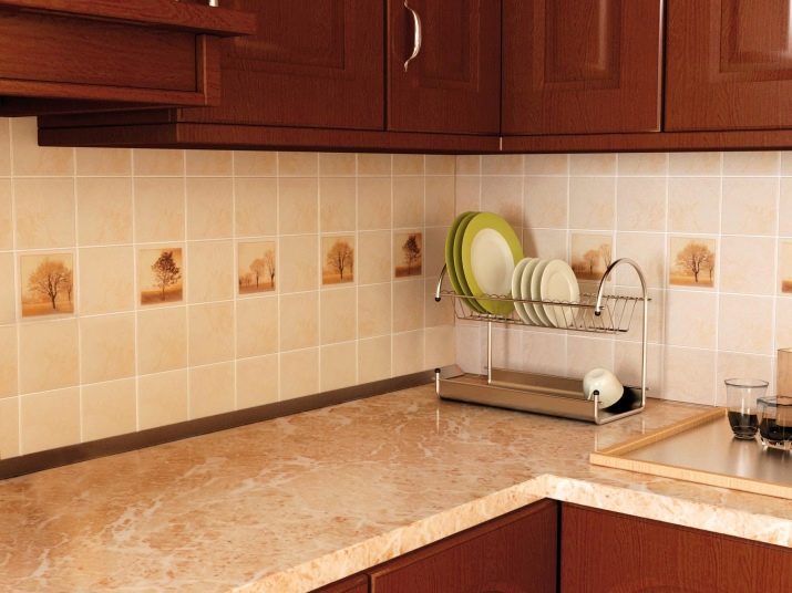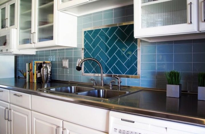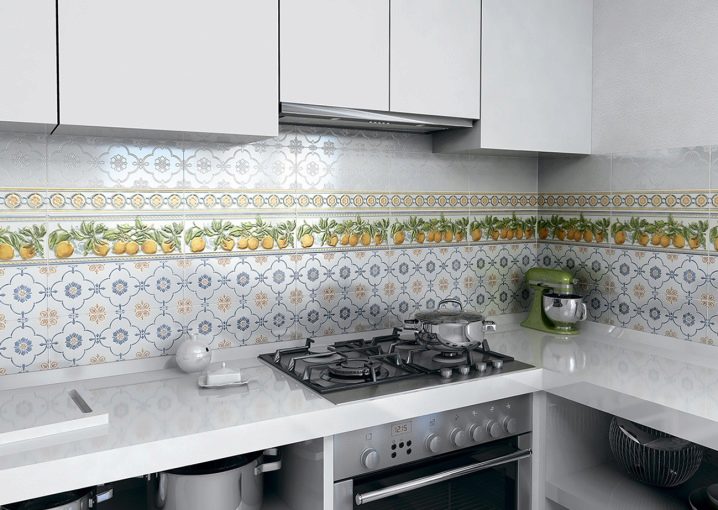 جزء مهم من المطبخ الحديث هو ساحة. تقع في مساحة العمل بين خزائن الحائط وسطح سطح العمل. خيار التصميم الكلاسيكي لهذه المنطقة هو البلاط. لديها عدد من المزايا مقارنة بالمواد الأخرى.. البلاط مادة عملية ودائمة للغاية. بمظهر جميل وأصلي ، فهي عملية للغاية ولا تتطلب صيانة معقدة. من المزايا المهمة للبلاط على المواد الأخرى أن آثار الأوساخ أقل وضوحًا من المواد الأخرى..