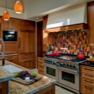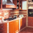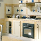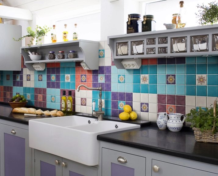 تم وضع الألواح أيضًا من شظايا من البلاط الصغير. السمة المميزة هي إنشاء تركيبة مركزية أو تكوين العديد من التراكيب والرسومات. تم تزيين الألواح بالبلاط القياسي أو الفسيفساء. سيبدو هذا المريلة متناغمًا في المطبخ المصمم على طراز بروفانس. غالبًا ما تستخدم صور الحيوانات والفواكه للزينة.. يوصي معظم المصممين بوضع الألواح تحت الغطاء..