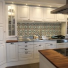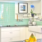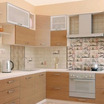 كان جدار العمل في المطبخ مبلطًا بالبلاط في العهد السوفياتي. لا يوجد سبب لطلاء مثل هذا الجدار ولصقه. المريلة مثالية للحماية من التلوث المنزلي. من المزايا المهمة لمثل هذا المريلة أنه من السهل تغييرها دون إجراء تجديد كامل في المطبخ. يتناسب عنصر التصميم هذا مع أي تصميم داخلي ويمنح وحدة المطبخ مظهرًا كاملاً. من المهم أن تتذكر أنه أولاً يتم وضع بلاطة باكسبلاش للبلاط ، وعندها فقط يتم تركيب مجموعة المطبخ..
