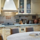 - بالنسبة للمطبخ ، فإن الأمر يستحق اختيار الخيارات دون راحة. من الأصعب بكثير إزالة الغبار والأوساخ من الأسطح السائبة..