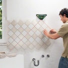 - بعد وضع الصف الأول على الحائط ، تحتاج إلى التحقق من الوضع الصحيح باستخدام المستوى. من المهم تثبيت تقاطعات بلاستيكية بين البلاط. في المستقبل ، سيعملون على تشكيل طبقات..