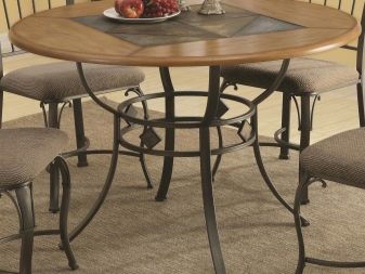 اعتمادًا على الديكور الزخرفي وتصميم المطبخ ، يتم أيضًا اختيار النمط المقابل للطاولة.. سيبدو النموذج المصنوع من المعدن على ساق واحدة مع أنماط مزخرفة غير عادي وأنيق. من الأفضل تزيين سطح مثل هذا المنتج بالبلاط بزخارف مشرقة. إذا سادت الألوان الزاهية في ألوان مجموعة المطبخ ، فيجب دمج سطح الطاولة مع واجهات الأثاث ، ومن الأفضل اختيار أساس الظلال الكلاسيكية الهادئة..