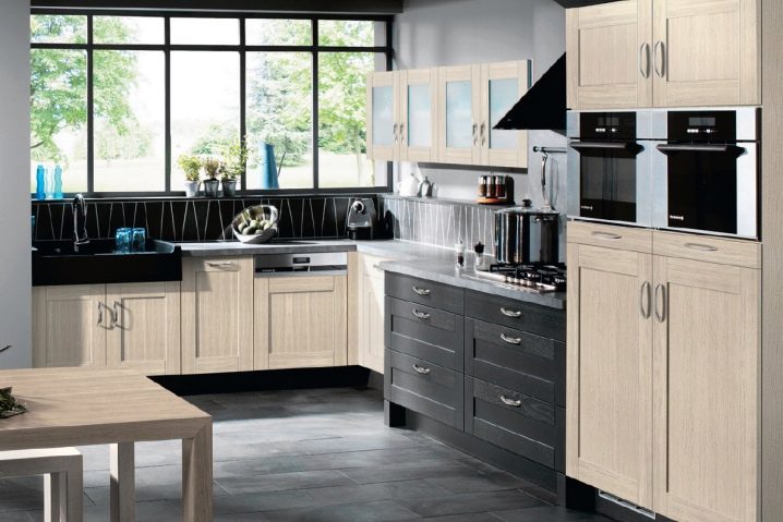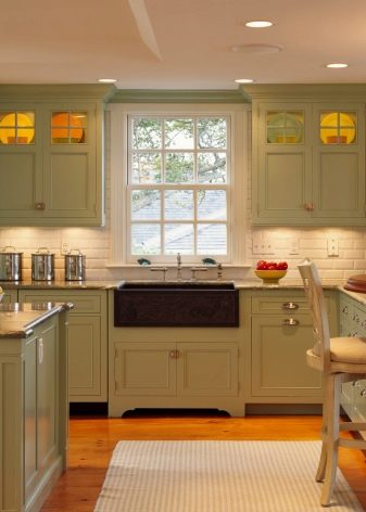 يتم اختيار ألوان الخزانة وفقًا لتصميم المطبخ وسطوع الإضاءة. في غرفة لا يوجد بها سوى القليل من أشعة الشمس ، سيكون الخيار الأفضل هو الأثاث ذو الألوان الفاتحة. بالنسبة للمطبخ الصغير ، لا يوصى بشراء طرز بألوان داكنة. إذا لم يتم ملاحظة النسب الواضحة في الجزء الداخلي من المطبخ ، فسيكون الخيار الأفضل هو الأنواع غير المتماثلة من الخزانات أو نماذج واجهات العرض الزاوية..
