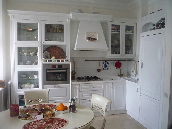 في الوقت الحاضر ، هناك خيار مثل عرض مدمج: يتم وضع أرفف زجاجية مع نفس الأبواب في منافذ خاصة..