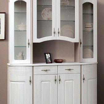 إذا تم شراء خزانة ملابس لتخزين الأطباق الاحتفالية ، فيجب عليك اختيار علبة عرض زجاجية بالكامل. إذا كانت الخزانة مصممة للأطباق اليومية ، فيجب عليك التحقق من التركيبات قبل الشراء: من الأفضل أن تكون مصنوعة من المعدن ، ومثبتة بإحكام ومتكيفة مع الوزن الإجمالي الكبير للأطباق. من المتطلبات المهمة لجسم الخزانة مقاومة درجات الحرارة المرتفعة والرطوبة والأوساخ ، ويجب أن يكون الأثاث متينًا ، ويعمل من 10 إلى 15 عامًا.