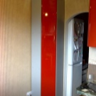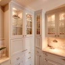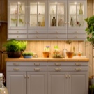 خزانة زجاجية ضيقة. في بعض الأحيان ، حتى الأجزاء العلوية والسفلية من الزجاج. كقاعدة عامة ، تُستخدم هذه الخزانات لتخزين أغلى الأطباق وأكثرها فخامة: الأطباق الفضية والبورسلين ومنتجات الكريستال. سوف تتناسب واجهات العرض تمامًا مع المطابخ الكبيرة. ستكمل واجهاتهم بشكل متناغم المشابك بنمط هندسي بسيط أو معقد..