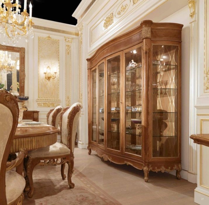 أسلوب أنيق ومتطور مع ملاحظات المسرحية والذوق البرجوازي والبوهيمي. أثاث عملي من حيث الشكل بتشطيبات ثرية مصنوع من مواد باهظة الثمن. إذا كانت الخزانة مصنوعة من الخشب البسيط المطلي باللون الأسود أو الأبيض أو البنفسجي وبها أبواب زجاجية عادية ، فمن المؤكد أنها مزينة بعرق اللؤلؤ أو الفضة أو الذهب.