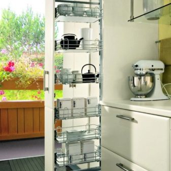 إنه رف مع أرفف مفتوحة ، نوع من الخزانة بدون أبواب ، واسع للغاية ، بفضل جميع الأدوات اللازمة دائمًا في متناول اليد. مثالي لمطبخ صغير ، فهو لا يخاف من تغيرات الرطوبة ودرجة الحرارة. في أغلب الأحيان ، تُصنع الأشياء المصنوعة من البلاستيك أو تجمع بين المعدن والخشب. يتناسب النموذج الخشبي تمامًا مع التصميم الداخلي الكلاسيكي ، خاصةً إذا قدمت هنا عددًا صغيرًا من الأرفف المغلقة..