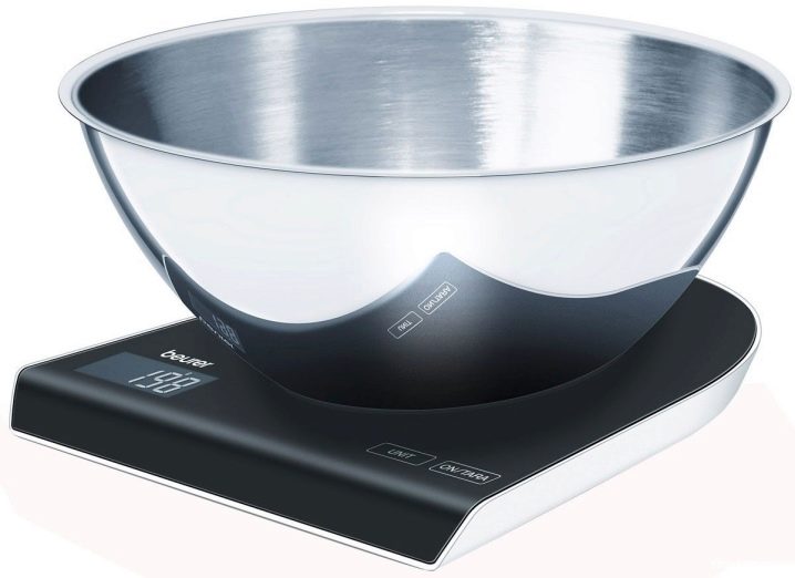 - بيورير. الموازين الإلكترونية ذات وعاء بتصميم لاكوني لها وظيفة صفرية ، ويمكن أن تتحمل وزن المنتجات حتى ثلاثة كيلوغرامات ، وهي مصنوعة من الفولاذ المقاوم للصدأ.