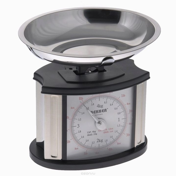 الجهاز الميكانيكي أقل دقة ولكنه متين. هذه النماذج مصنوعة من الفولاذ المقاوم للصدأ. الجانب السلبي هو أن الموازين الميكانيكية ذات الوعاء تشغل مساحة كبيرة في المطبخ ، لذلك من الأفضل اختيار الأجهزة الإلكترونية لشقة المدينة. بشكل عام ، تعتبر نماذج المطبخ التي تحتوي على وعاء أمرًا لا غنى عنه في الداخل الحديث. فهي متعددة الوظائف وتتناسب تمامًا مع أي مساحة عمل.