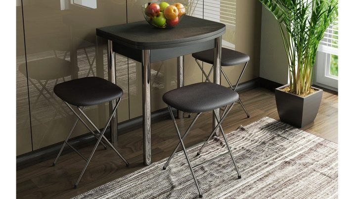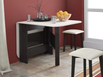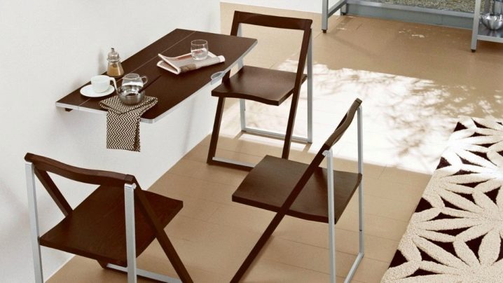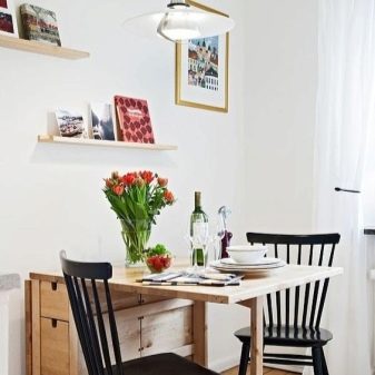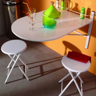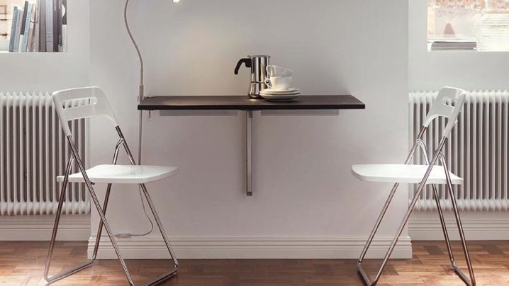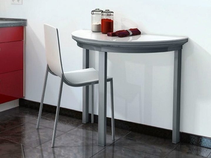 ربما يكون هذا هو النموذج الأكثر نجاحًا. عند طيها ، تبدو وكأنها لوحة مضغوطة على جدار المطبخ. لا تشغل مساحة على الإطلاق ، لكن يكفي طيها على أرجل صغيرة قابلة للسحب ، ومساحة تناول الطعام جاهزة..